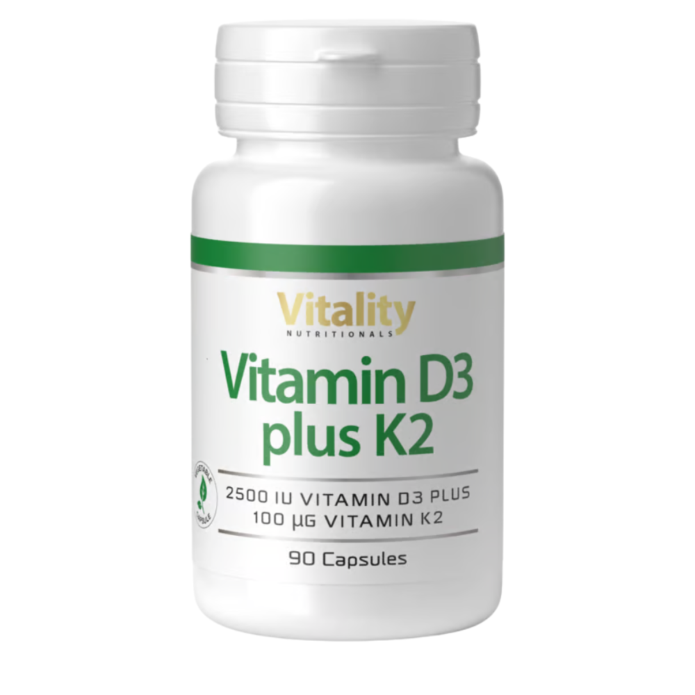 Vitality Nutritionals Vitamin D3 2500 plus K2 100 MK7 bietet eine Formel mit qualitativen Inhaltsstoffen. Das Produkt enthĂ€lt natĂŒrliches Vitamin K2, das durch Fermentation gewonnen wird und eine gute BioaktivitĂ€t aufweist, kombiniert mit Vitamin D3 aus Lanolin. Es wird nach europĂ€ischen GMP-Standards hergestellt und unabhĂ€ngig auf Reinheit geprĂŒft und erfĂŒllt die Anforderungen an pharmazeutische QualitĂ€t.