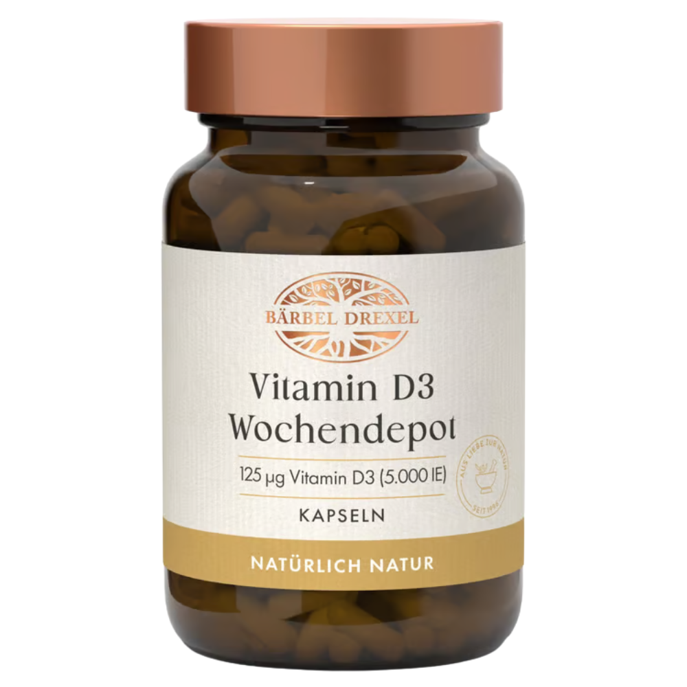 BĂ€rbel Drexel Vitamin D3 5000 I.U. Weekly Depot punktet mit einer praktischen wöchentlichen Dosierung und garantiert durch regelmĂ€Ăige unabhĂ€ngige Tests eine hohe FertigungsqualitĂ€t âMade in Germanyâ. Als reine Vitamin-D-Lösung bietet es eine starke Dosis fĂŒr die langfristige Versorgung â allerdings fehlt Vitamin K2 vollstĂ€ndig.