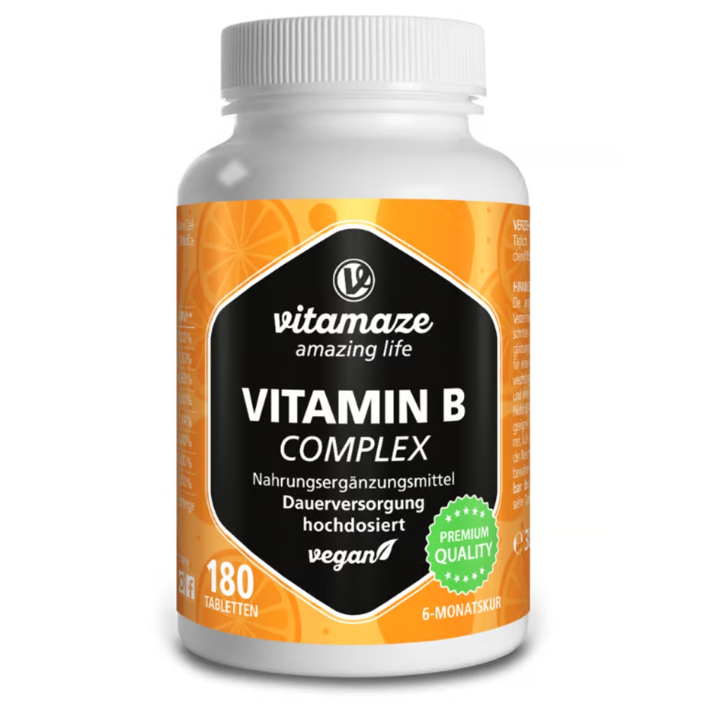 Vitamaze Vitamin B Komplex hochdosiert ist die erste Wahl für eine umfassende B-Vitamin-Supplementierung. Mit allen acht essentiellen B-Vitaminen in optimaler therapeutischer Dosierung bietet dieses in Deutschland hergestellte Nahrungsergänzungsmittel außergewöhnliche Qualität zu einem unschlagbaren Preis. Die pharmazeutischen Produktionsstandards in Kombination mit einer Sechsmonatsversorgung pro Flasche machen es zur kostengünstigsten Option auf dem Markt.