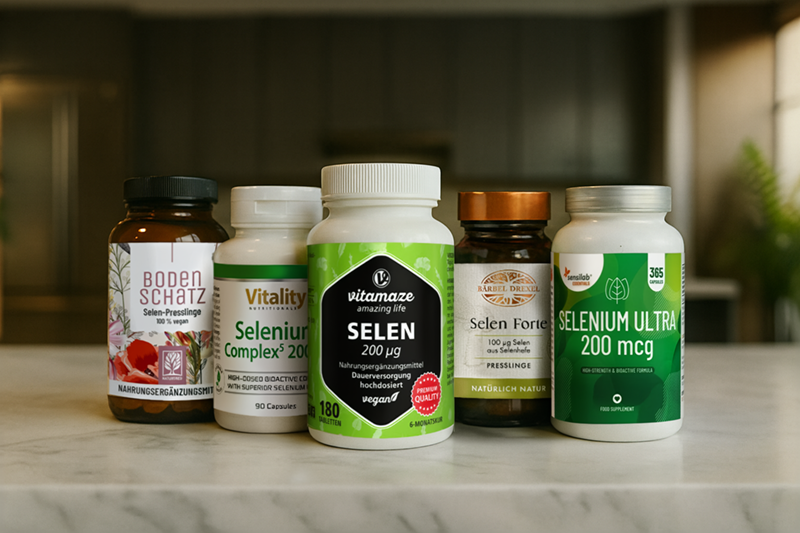 Unsere Rangliste der besten Selenpräparate basiert auf Kriterien wie Bioverfügbarkeit, Reinheit und Dosierung.Wir haben wissenschaftliche Erkenntnisse, Kundenfeedback und Herstellungsstandards sorgfältig geprüft, um Produkte zu empfehlen, die Selenmangel gezielt ausgleichen und Ihre Vitalität stärken – von der Schilddrüse bis zu Haaren, Nägeln und Zellen.